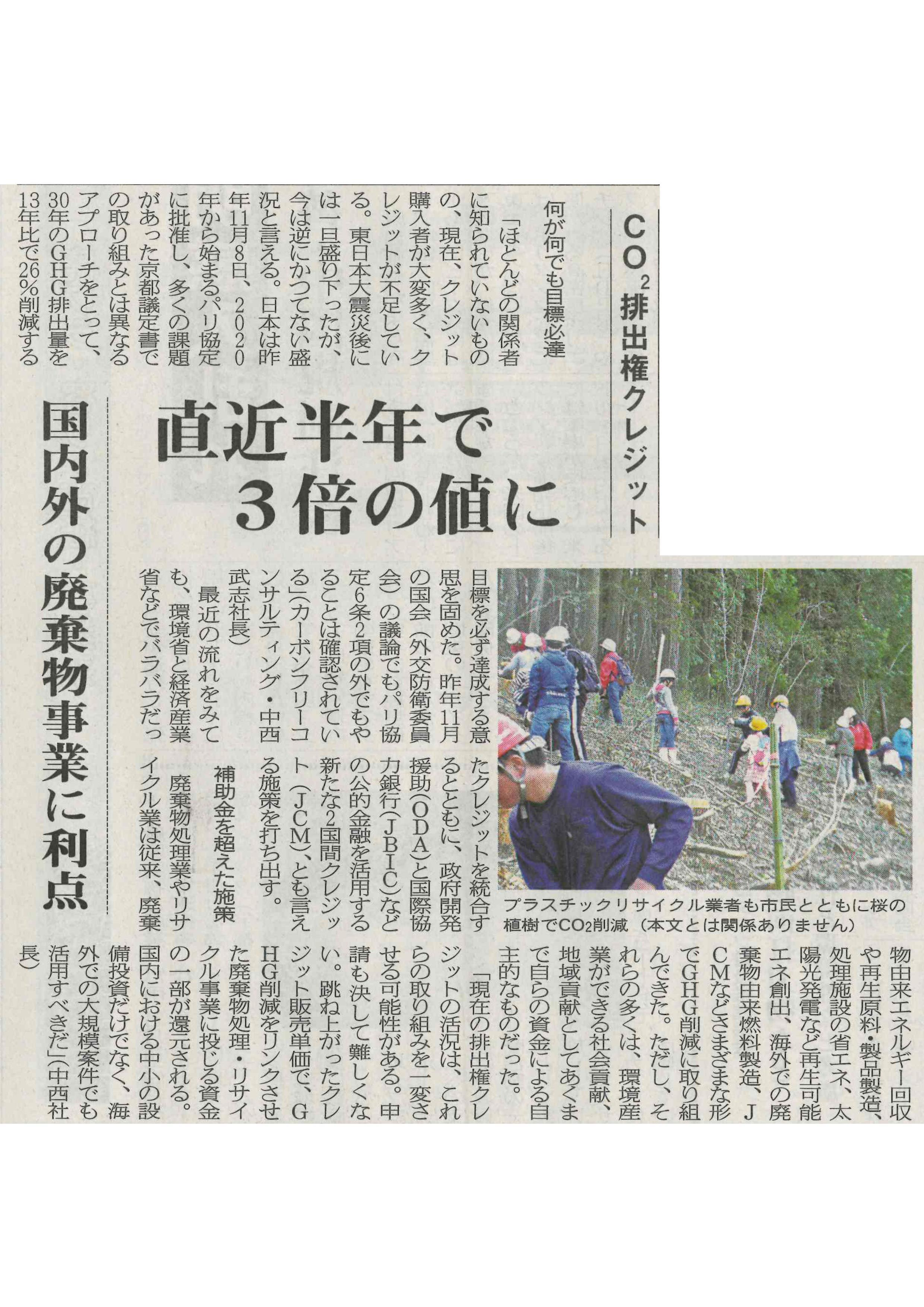 パリ協定と最近の排出権クレジットについて代表のコメントが掲載されました。